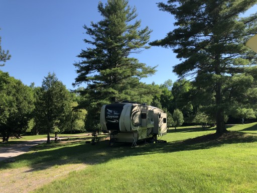 Friendly staff. Easy check in (and they follow up after your stay as well). Good power and water. Mostly level spots to fit big rigs. Many woodsy spots, and close to Bayfield.