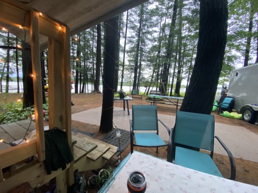 This is a good spot for short stay. Bathrooms are very clean and campground clean. Be aware that there are trains and highway noise so stay on the lake side. A lot of room at sites and separated by trees.